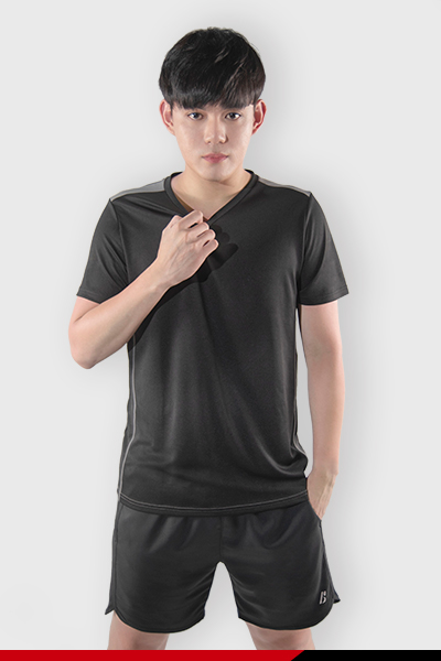男性實穿短袖短褲運動服,吸濕排汗運動短袖T恤-黑、柔運動短袖T恤-藍、網眼拼接運動短褲-黑